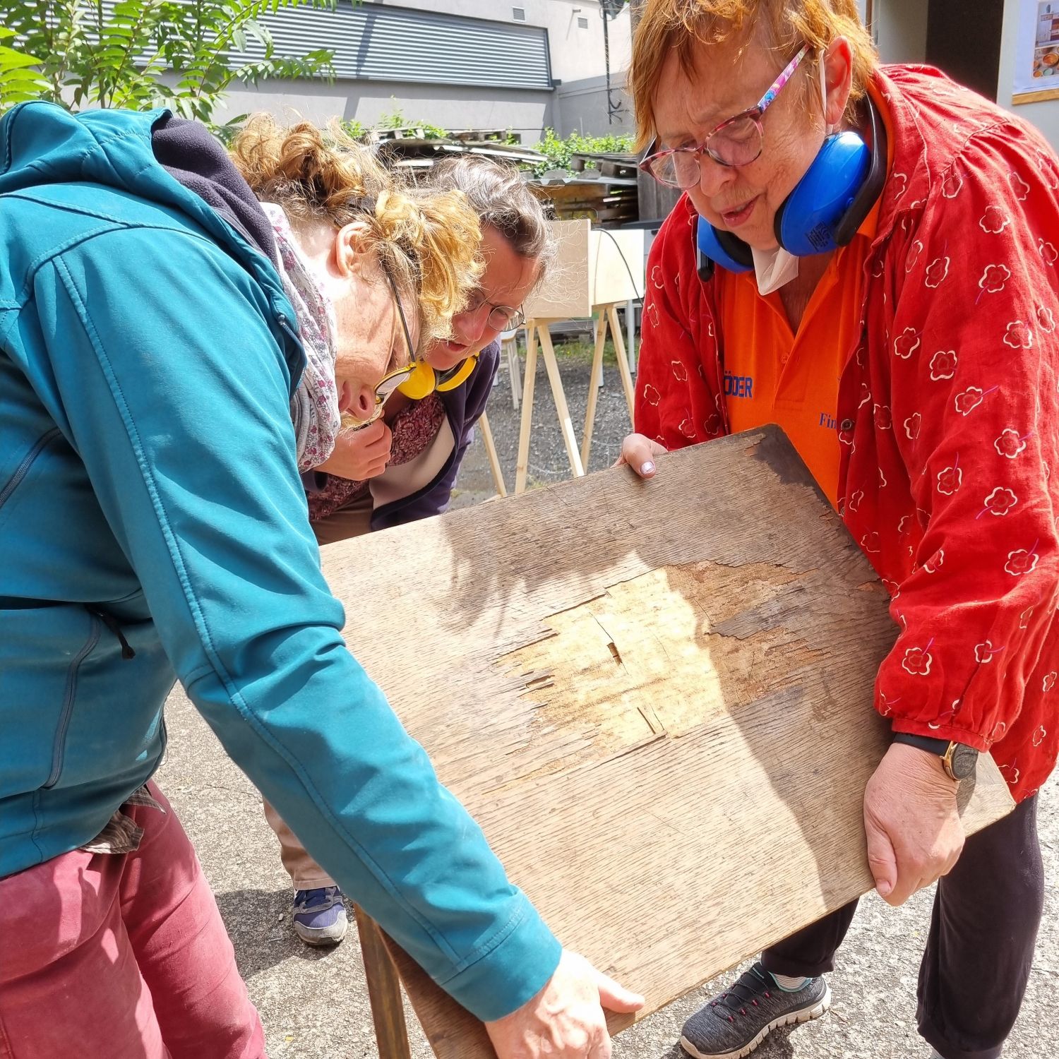 Ein inklusives Projekt, ob Workshop, Projektwoche oder auch eine Workshop-Reihe, die so ausgerichtet ist, dass sie auch Menschen mit körperlicher oder geistiger Behinderung, oder auch geflüchteten Menschen aus anderen Kulturkreisen etc.  ein Mitmachen ermöglicht. Wir kreieren ein Upcycling-Projekt, das zu Ihnen passt. Dabei steht Gemeinschaft im Mittelpunkt. Neben leichten handwerklichen Tätigkeiten, dem Streichen und kreativem Bemalen geht es vor allem um den gemeinsamen Prozess. Miteinander und Einander-Helfen ist wichtig – das bringt erlaubt bereichernde Erfahrungen. Projektmöglichkeiten sind z.B. Statement-Bänke aus Stühlen, Lattenzaun bauen und anmalen oder ein Schilder-Workshop.