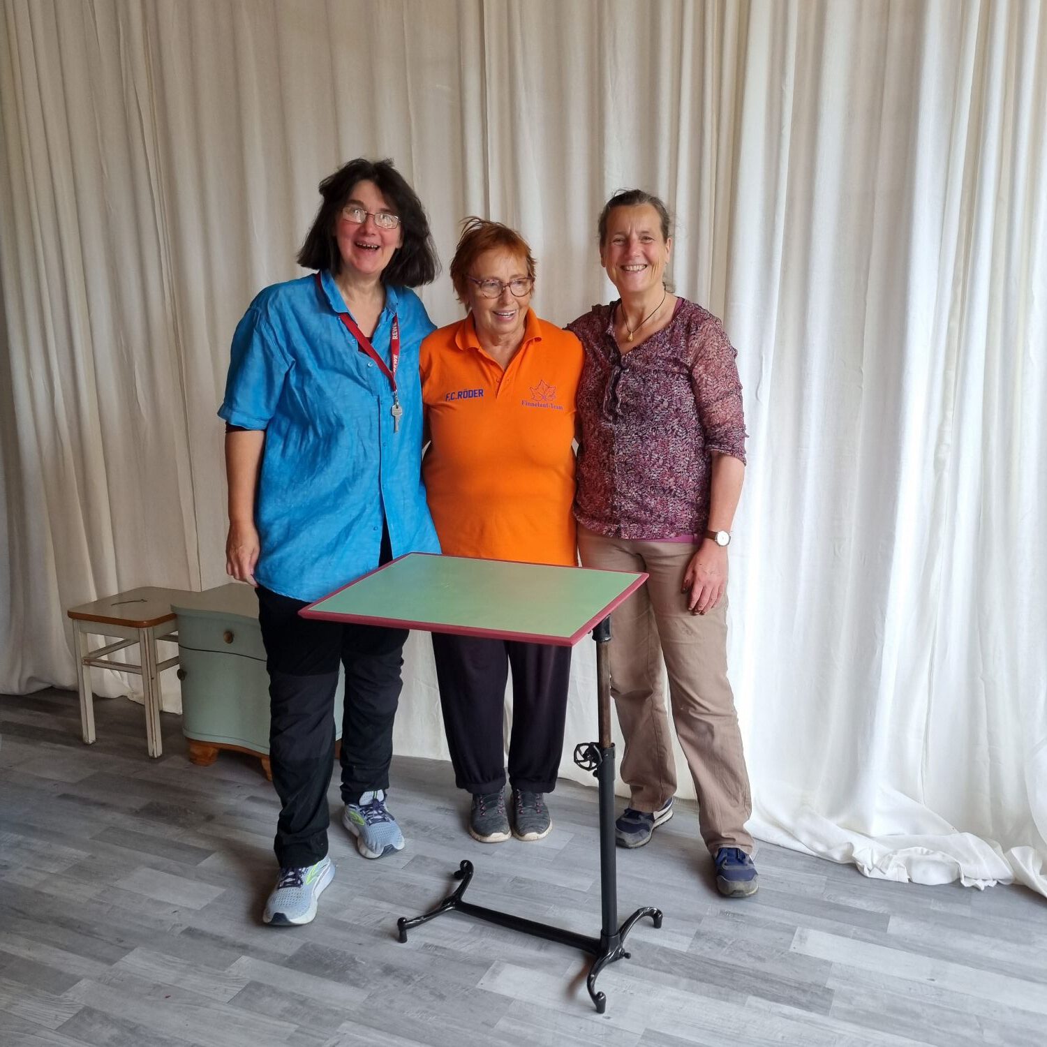 Sie bringen ihr eigenes kleines Möbel mit (z.B. Beistelltisch, Hocker, Nachtschränkchen, Stuhl) oder wählen ein geeignetes Stück aus dem Trewiens-Fundus.